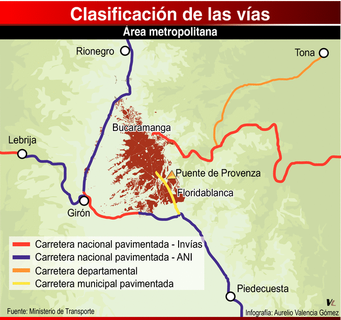 El Área Metropolitana y la Dirección de Tránsito de Floridablanca, en consulta con el Ministerio del Transporte y el Invías, verificarán la clasificación definitiva del tramo vial que va del Puente de Provenza al sector de ‘Papi Quiero Piña’.
