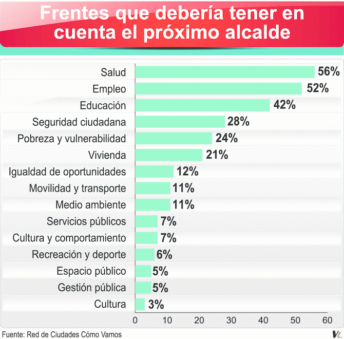 Salud, empleo y educación son los frentes que, a juicio de los bumangueses, requieren de mayor atención por parte del Alcalde. Así lo afirmaron las personas entrevistadas por el programa Cómo Vamos.