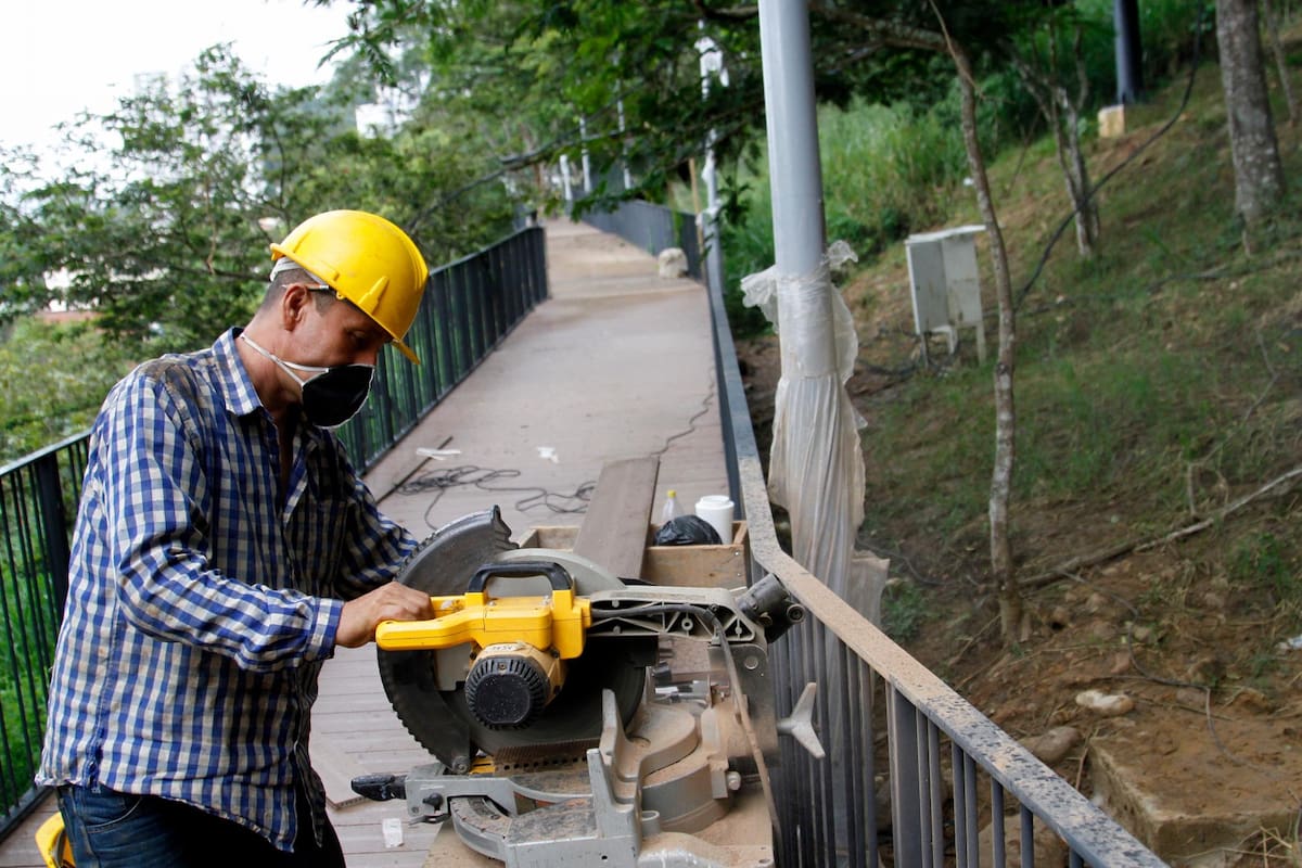 Peter Erazo, inspector de Interventoría del proyecto, indicó que esta obra “tiene un avance de poco más del 80%. Estamos ultimando los detalles de pintura y trabajos en el piso. Además de la pasarela peatonal, habrá un huerto y juegos infantiles”.