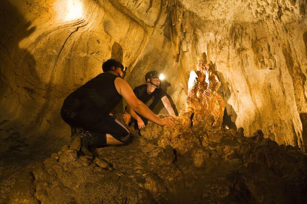 La exploración de esta cueva húmeda tarda una hora y media y tiene varios arrastres bajos por lo que todo el tiempo hay que estar deslizándose y nadando por senderos de techo bajo. Se pueden observar formaciones calcáreas, disfrutar de toboganes, y encontrarse con murciélagos, arañas, alacranes y otros insectos.