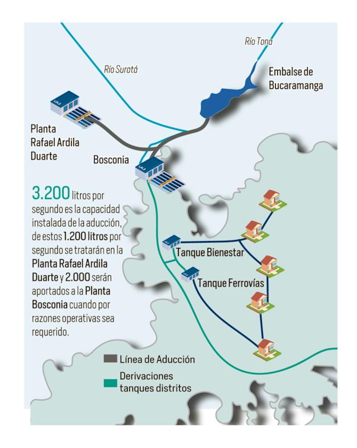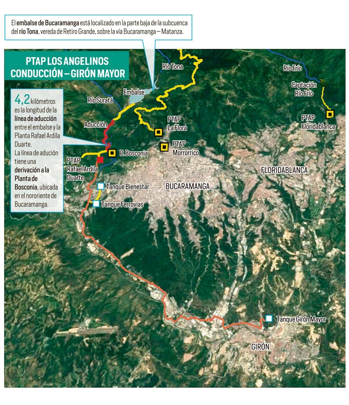 “Previendo esta situación se construye el proyecto de regulación del río Tona - Embalse de Bucaramanga, que contempla el embalse, la línea aducción, la planta Rafael Ardila Duarte y la conducción hacia los demás tanques, que en total son 42”, acotó.