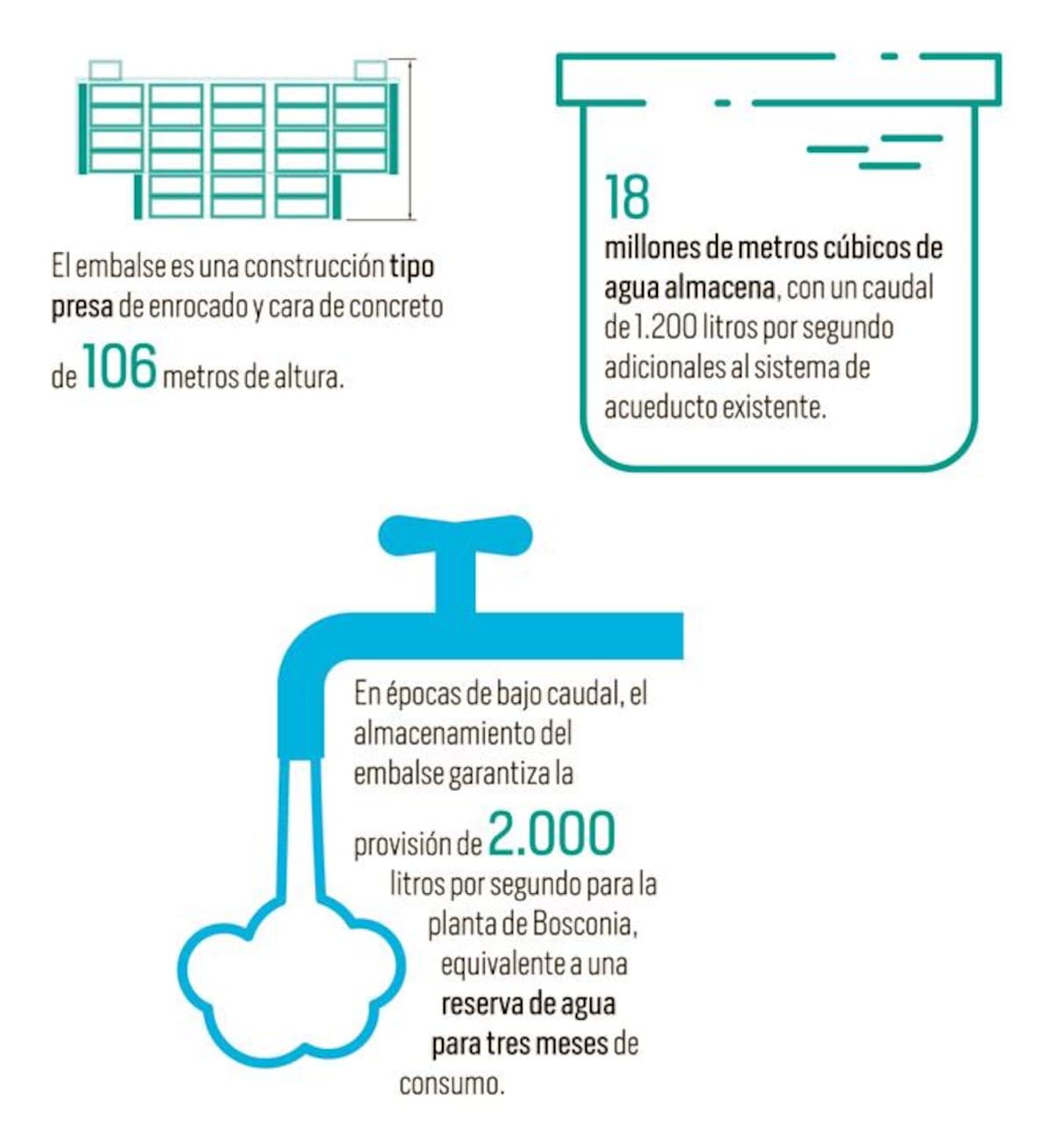 Clavijo, por su parte, agregó que si bien no se podría hablar de un racionamiento si no se tuviera el embalse, sí estarían las alarmas encendidas porque el bajo caudal del río hace difícil la captación y vuelve frágil el sistema.