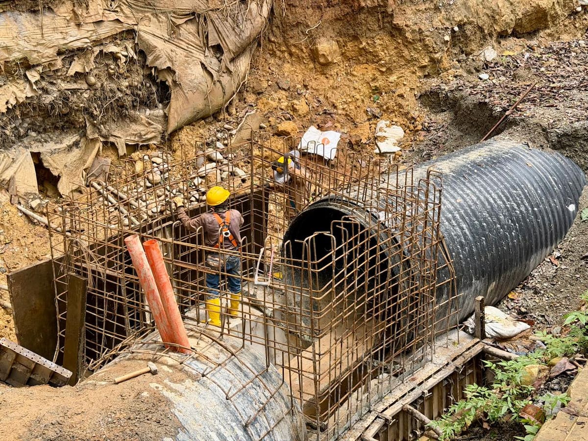 En uno de los tramos de estos afluentes, la Alcaldía de Bucaramanga avanza en la construcción de un box culvert, junto con obras de pavimentación en concreto. Como se ha informado previamente, estos trabajos son ejecutados por el Consorcio La Flora 2023.