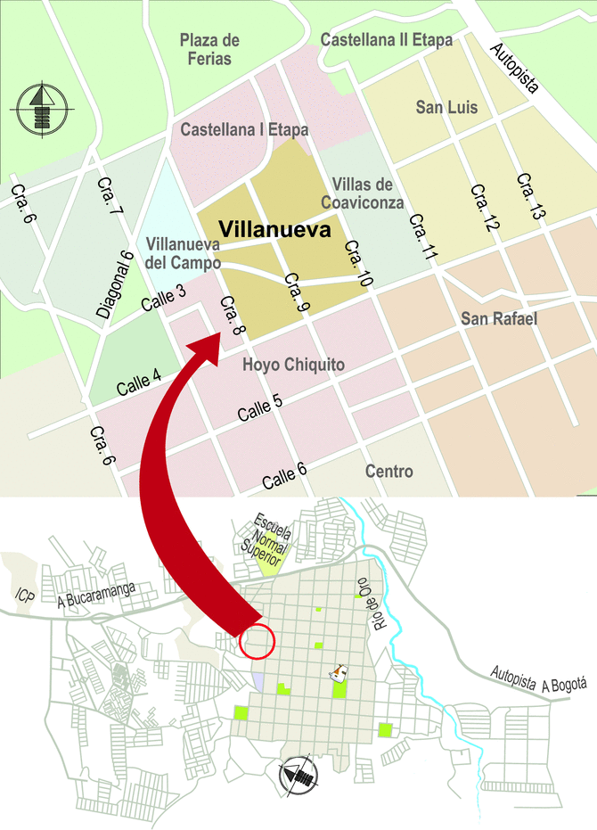 A su turno, William Carreño, presidente de la Junta de Acción Comu-nal, JAC, de Villanueva, comenta que el barrio nació hace 45 años y por tratarse de un sector céntrico y popular fue atrayendo a familias en un terreno que inicialmente fue un cañaduzal que lo atravesaban dos quebradas (Suratoque y Villanueva).