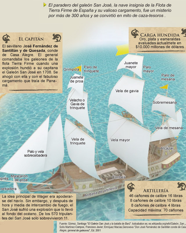 Desde su infructuoso viaje hasta la actualidad, el galeón San José ha generado la disputa por su riqueza entre Colombia, España, Estados Unidos, Panamá y Perú. Y con su hallazgo, comienza la pugna por quién se quedará con sus tesoros.