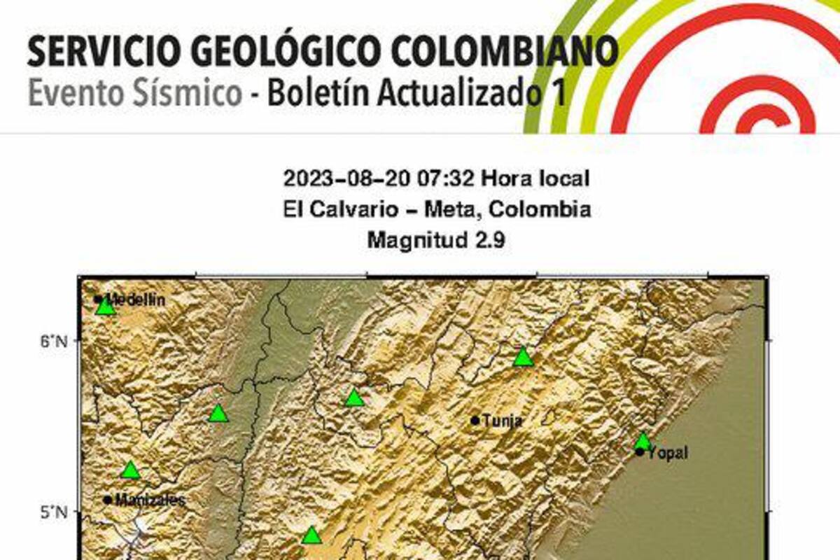 El Servicio Geológico Colombiano reportó un nuevo temblor que sacudió al municipio de El Calvario, en Meta, epicentro donde se ha reportado la mayoría de sismos que han alarmado a los colombianos durante esta semana.