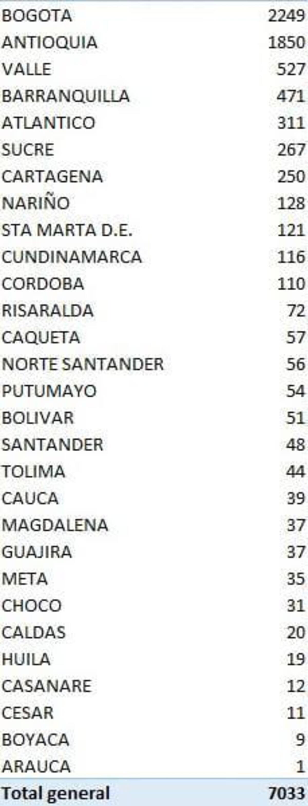 Hoy se procesaron: 28.801 pruebas. Desde el inicio de la pandemia se han procesado 1.292.501 muestras. Según el informe de Ministerio de Salud en Santander hay 2.134.