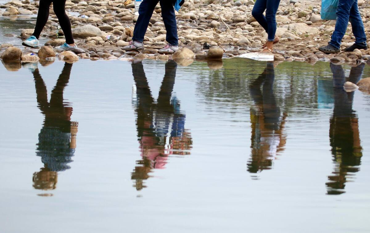 Además de tener que caminar por trochas, los niños se ven obligados también a hacerlo por los pedregales que ha dejado el secamiento del río Táchira.