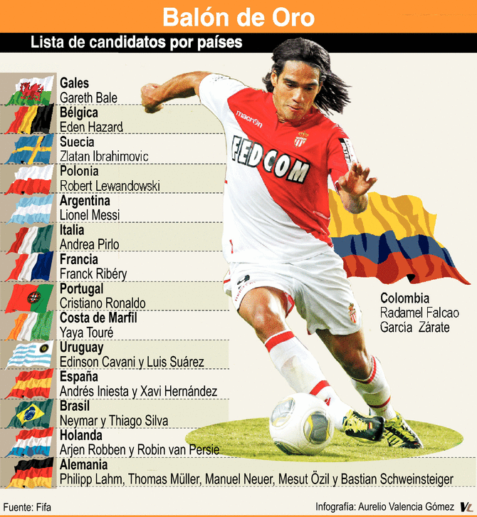 En la lista de 23 hay una nutrida representación del fútbol latinoamericano, ya que, además de Messi, están nominados los uruguayos Luis Suárez y Edinson Cavani, el colombiano Radamel Falcao, los brasileños Neymar y Thiago Silva.