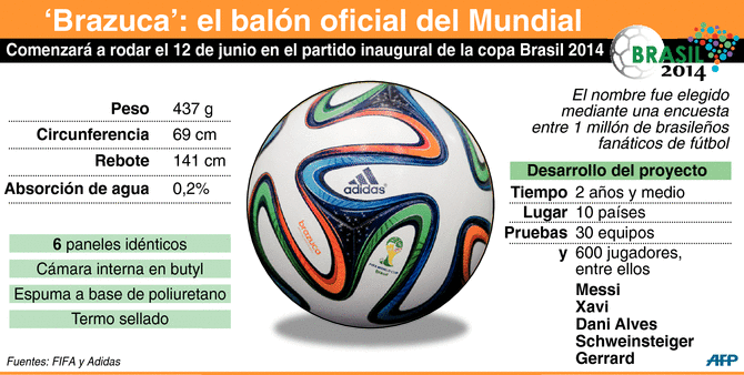 El brazuca, balón oficial de la Copa Mundial de la Fifa Brasil-2014, fue bautizado en septiembre de 2012, tras una votación popular llevada a cabo en Brasil entre más de un millón de aficionados al fútbol.