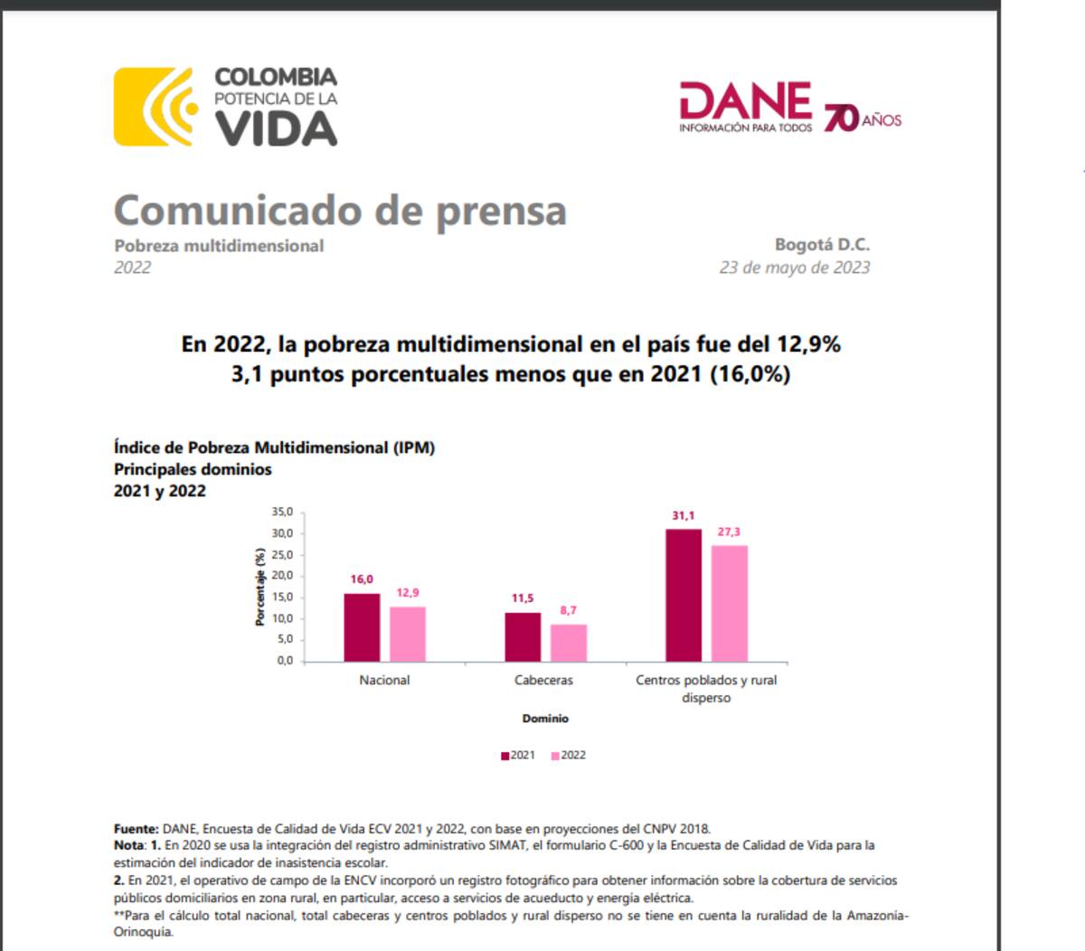 Por último, resaltó el enfoque diferencial e interseccional que desde el Dane han promovido en estas nuevas cifras, y que se debe reflejar en las políticas públicas nacionales y locales.