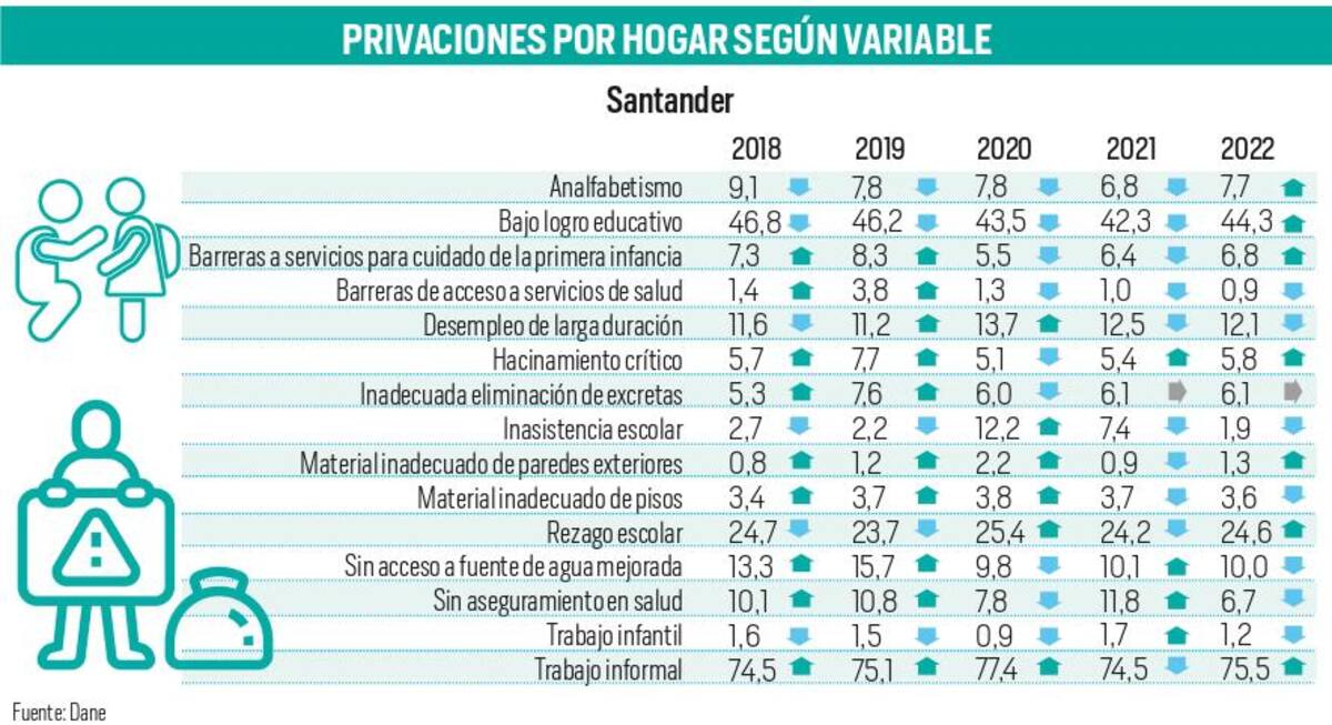 De las 15 variables que mide el Índice de Pobreza Multidimensional, Santander obtuvo 7 con mejoras entre 2021 y 2022, otros 7 desmejoraron, y solo uno se mantuvo igual. ¿En qué le fue tan bien y tan mal a la región?