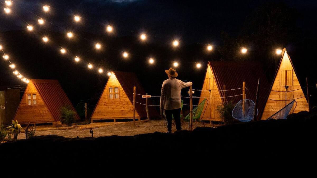 Servicio: Este campamento está ubicado en los alrededores de Zapatoca. Su servicio de glamping consiste en unas cabañas de madera tipo chalet, diseñadas para dos personas. Están equipadas con colchoneta, sábanas, tendidos, almohadas y energía eléctrica. El plan incluye desayuno. Se recomienda llevar buen abrigo para la noche.