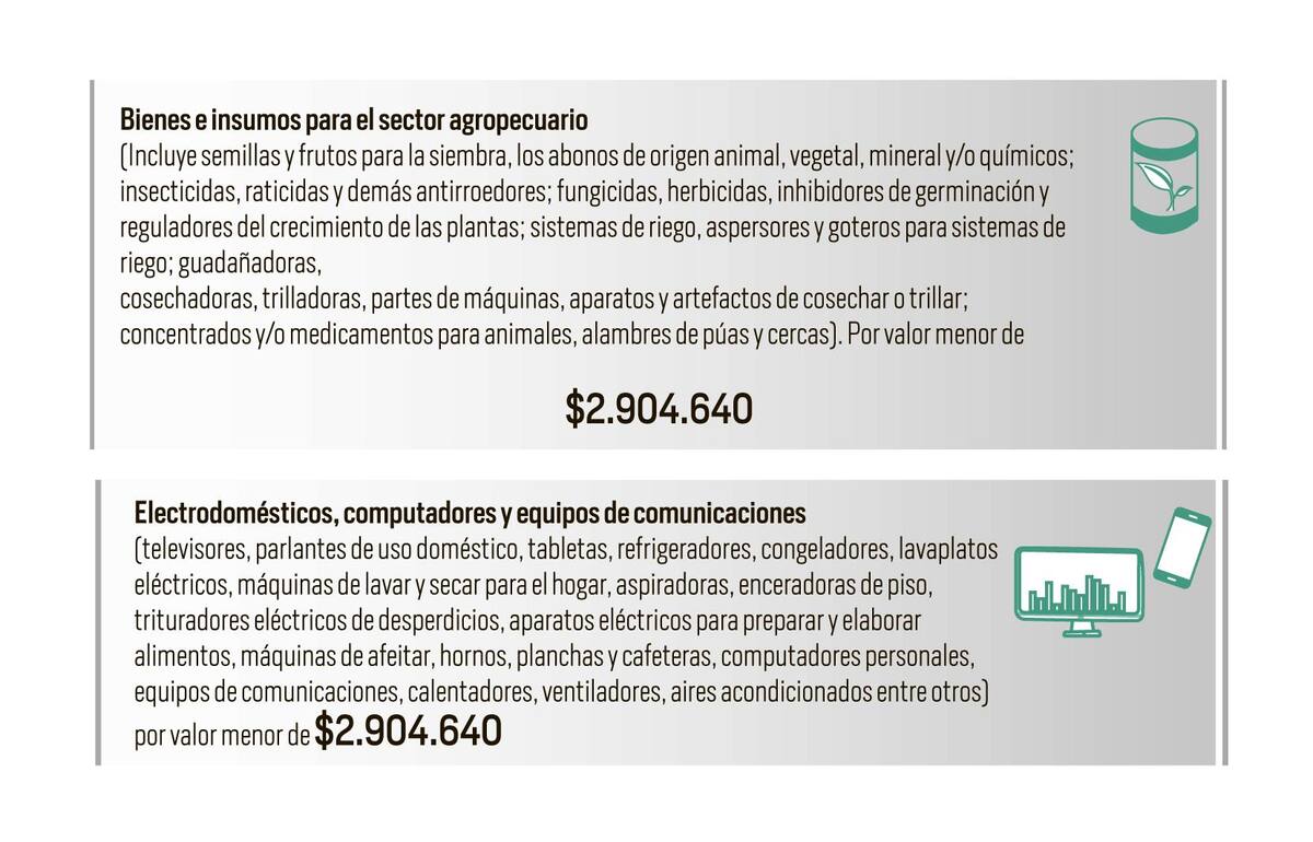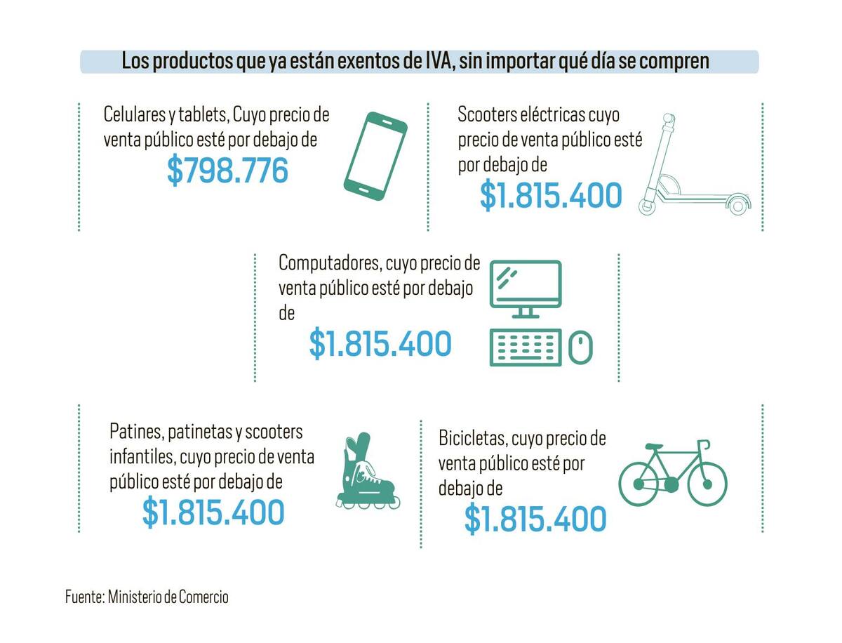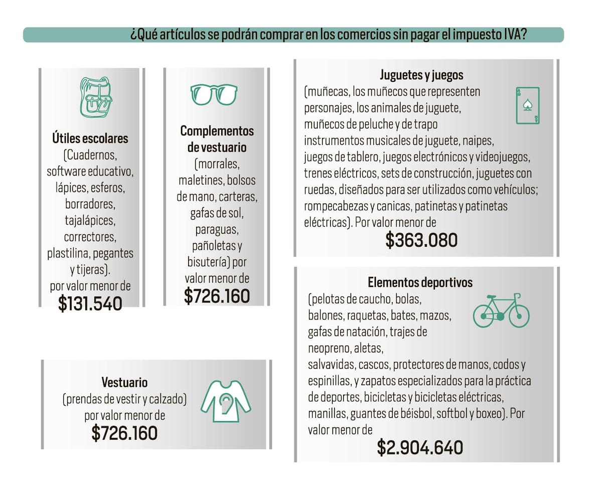 Son al menos siete categorías las que tendrán la exención del impuesto (Ver gráfica). Para beneficiarse, los compradores podrán adquirir sus productos, ya sea en los establecimientos físicos o a través del comercio electrónico. Podrá hacer pagos en efectivo o a través de tarjetas débito y crédito.