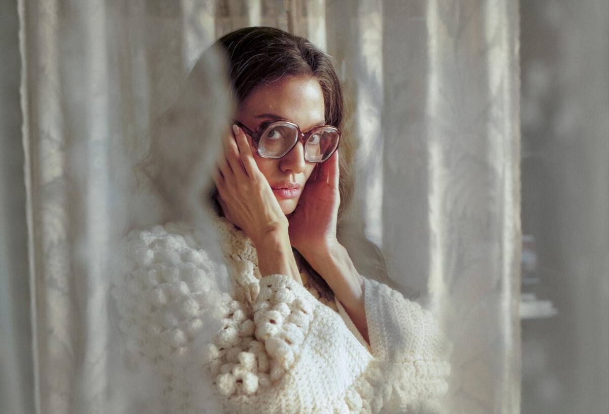 Una de las productoras de “María”, la italiana “The Apartment”, difundió dos imágenes de la película: en una se puede ver a Jolie entre cortinas, mirando a cámara tras unas grandes gafas y envuelta en un jersey de lana blanca.