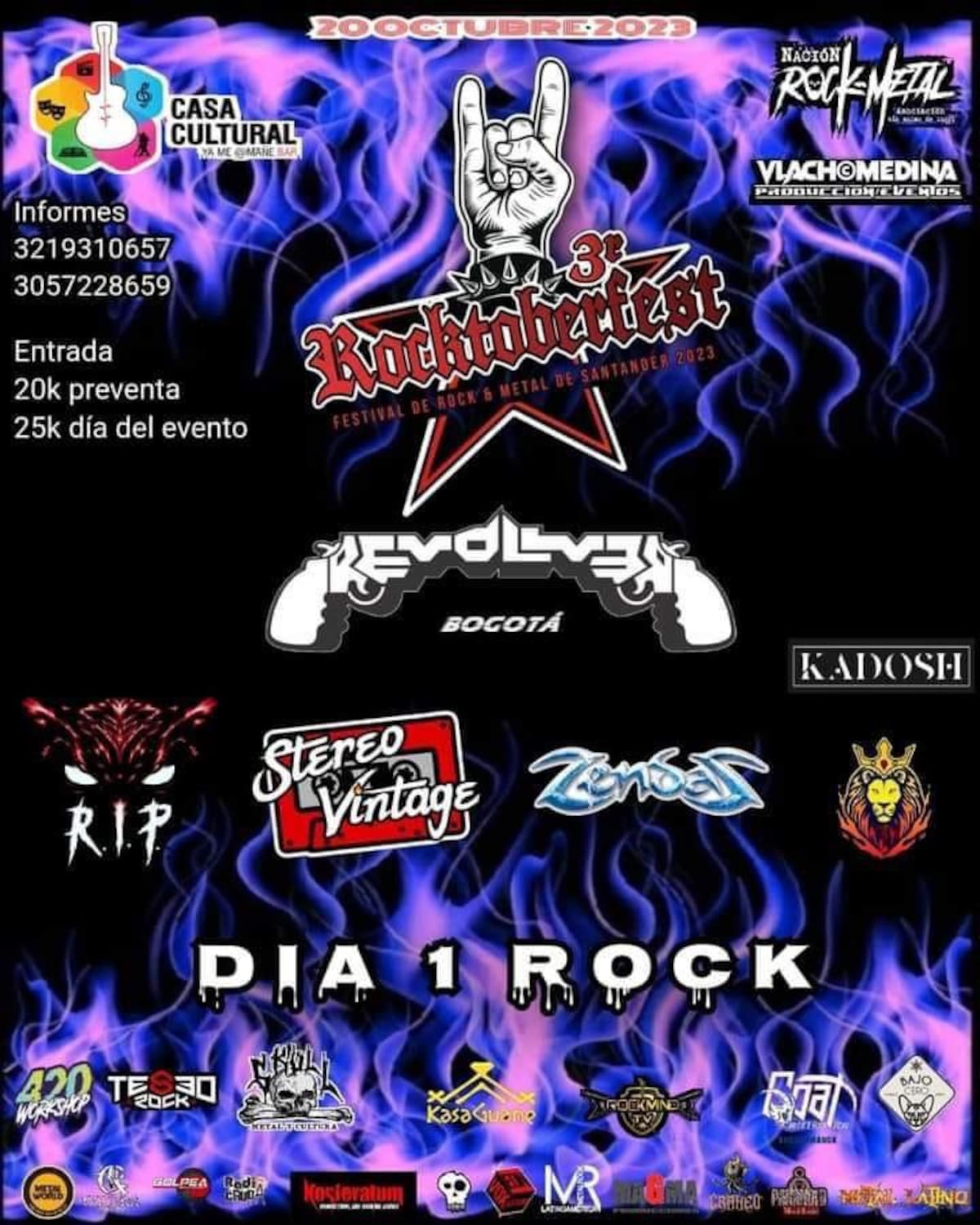 El 20 de octubre, se presentarán R.I.P., Exiliados, Kadosh, Stereo Vintage, Sir Cabaret y el plato fuerte de la noche, los legendarios caminantes del heavy metal colombiano, Zendas.