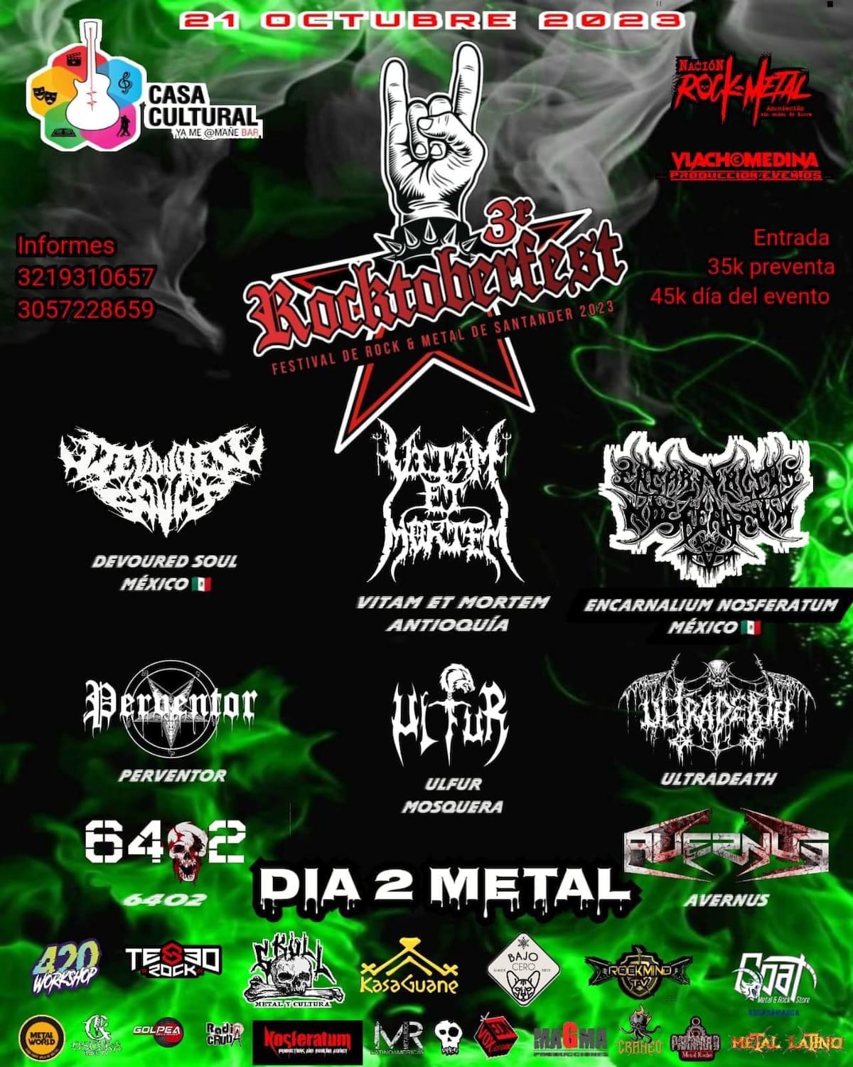 El 21 de octubre, Devoured Soul, Encarnalium Nosferatu, Vitam Et Mortem, Perventor, Ulfor, Ultradeath, 6.402 y Avernus tomarán el escenario.