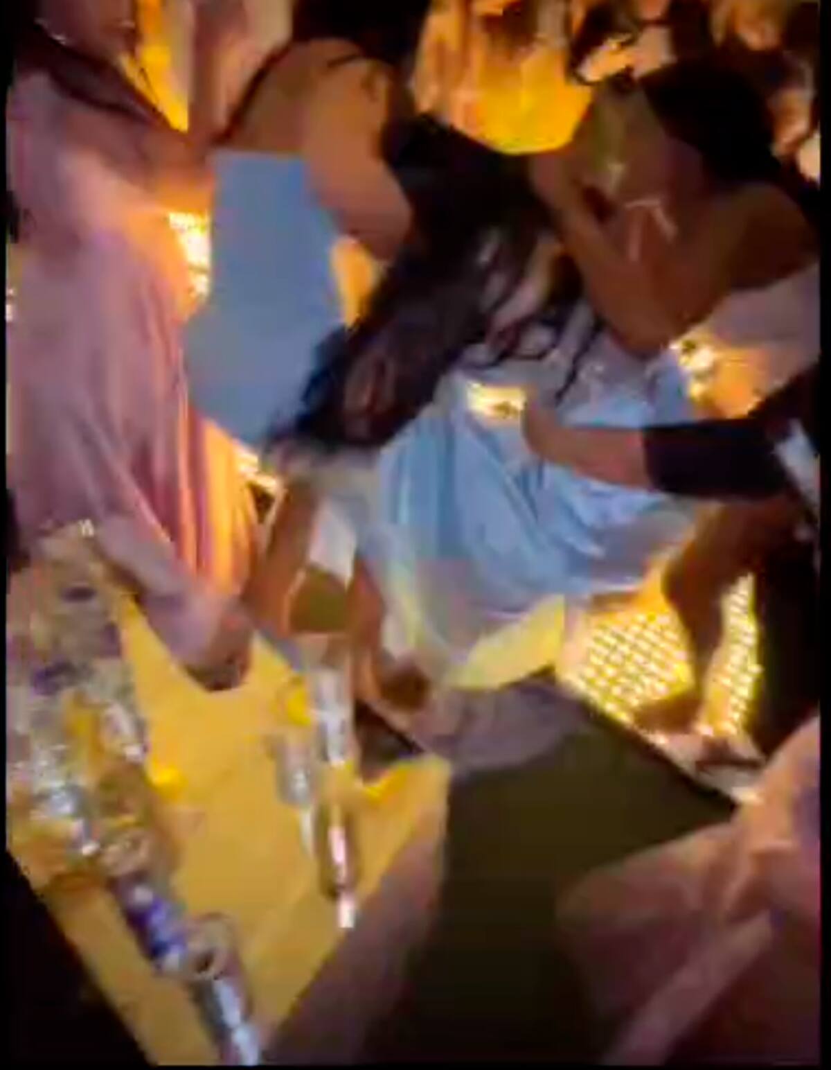 Luego de esto, también tomó del cabello a otra invitada, a la vez que le arrancaba de sus manos las flores: acto seguido celebró saltando hacia los demás asistentes que la observaban, para luego lanzarles como basura el ramo, al parecer en un acto de rebeldía, dañando el momento especial.