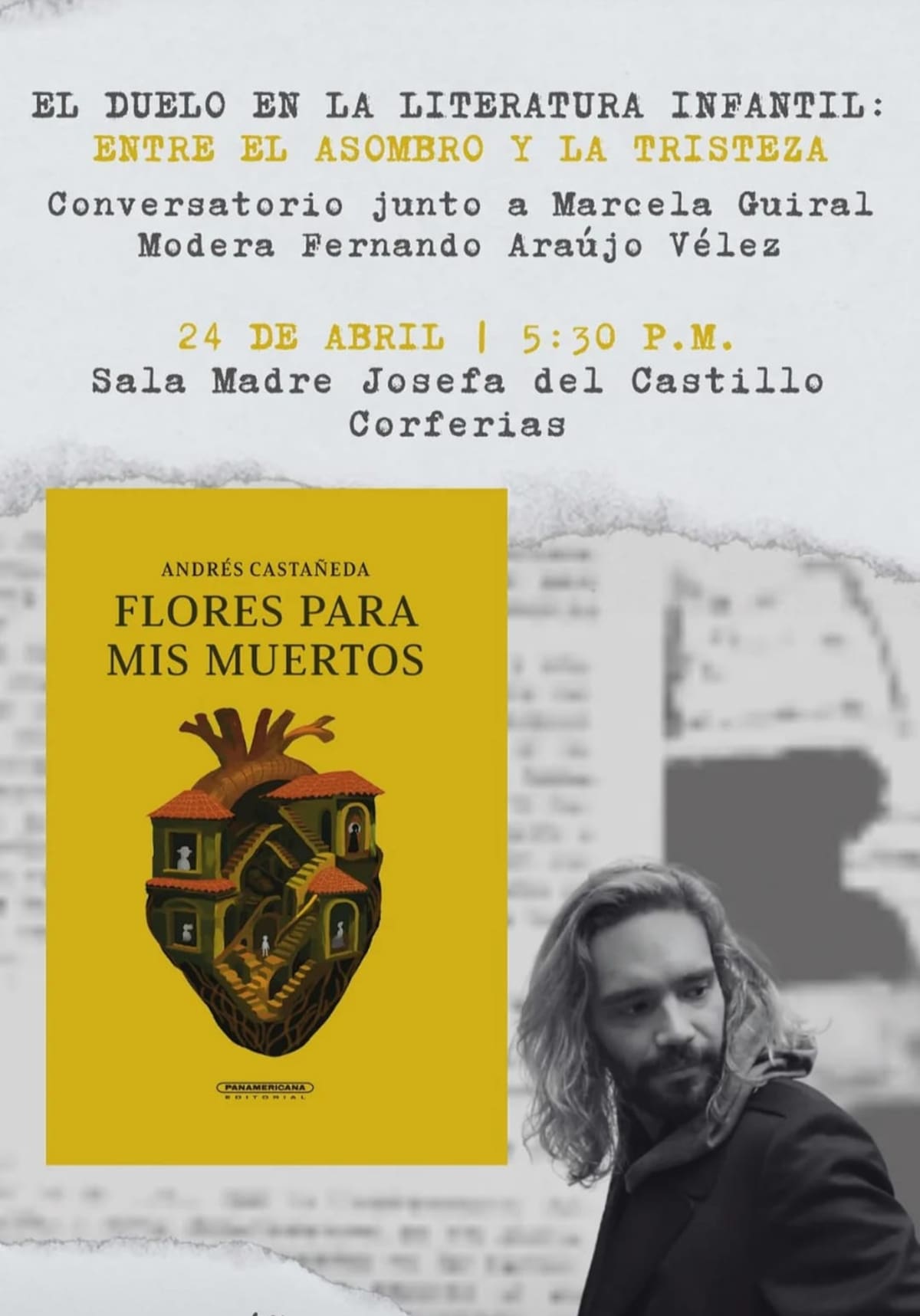 El autor santandereano Andrés Castañeda participa en el conversatorio El duelo en la literatura infantil: entre el asombro y la tristeza, organizado por Panamericana Editorial, este viernes 24 de abril a las 5:30 p.m. en la Sala Madre Josefa del Castillo (Pabellón 11 al 16, segundo piso de Corferias). Junto a la escritora Marcela Guiral y el periodista Fernando Araújo Vélez, Castañeda conversará sobre cómo la literatura puede acompañar a los niños en el proceso de enfrentar la pérdida y el dolor.