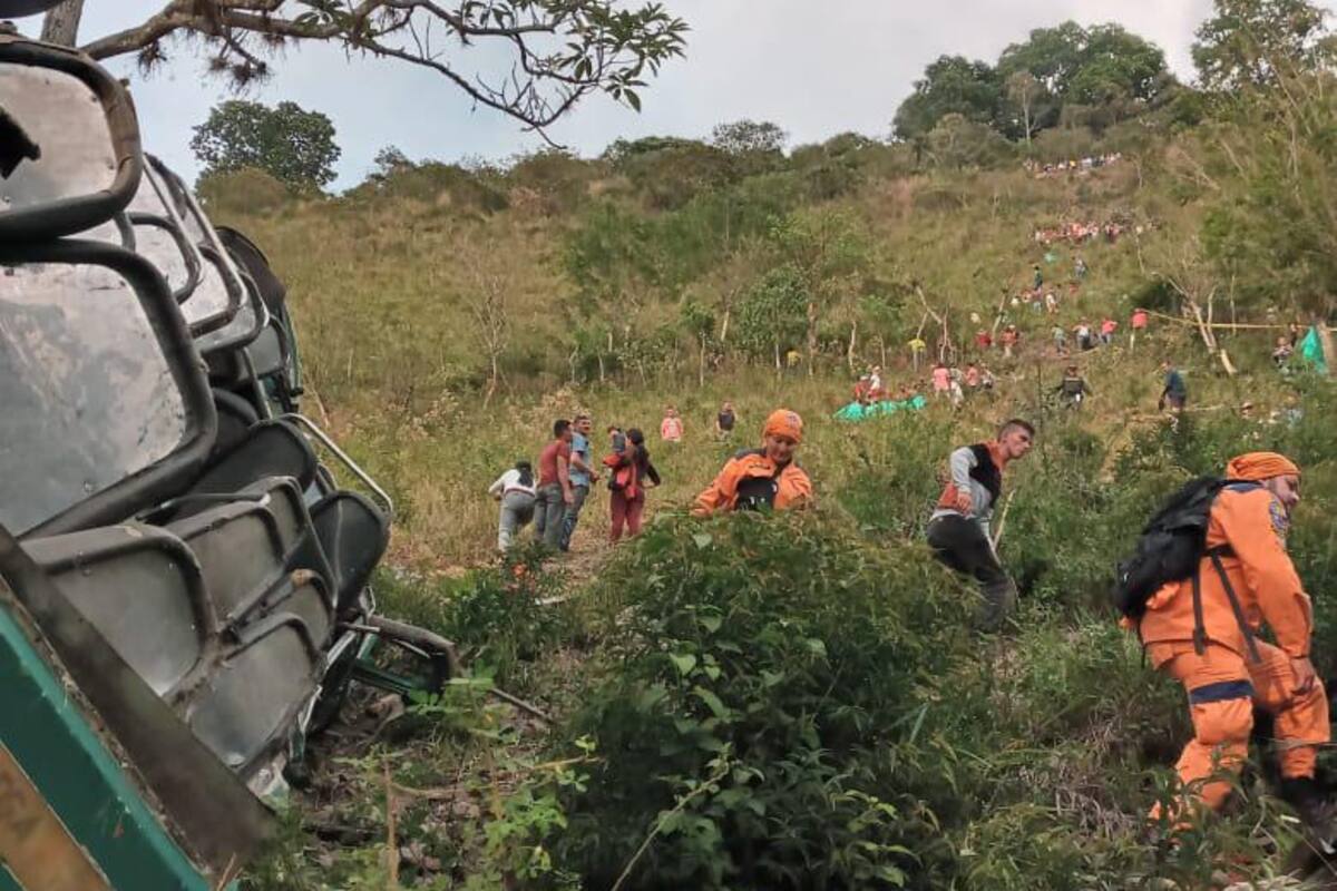 Una buseta que se desplazaba desde la Institución Educativa Laguna de Ortices, en San Andrés, Santander, para llevar a los niños de regreso a sus casas se accidentó este martes. El vehículo rodó cerca de 200 metros por el abismo.