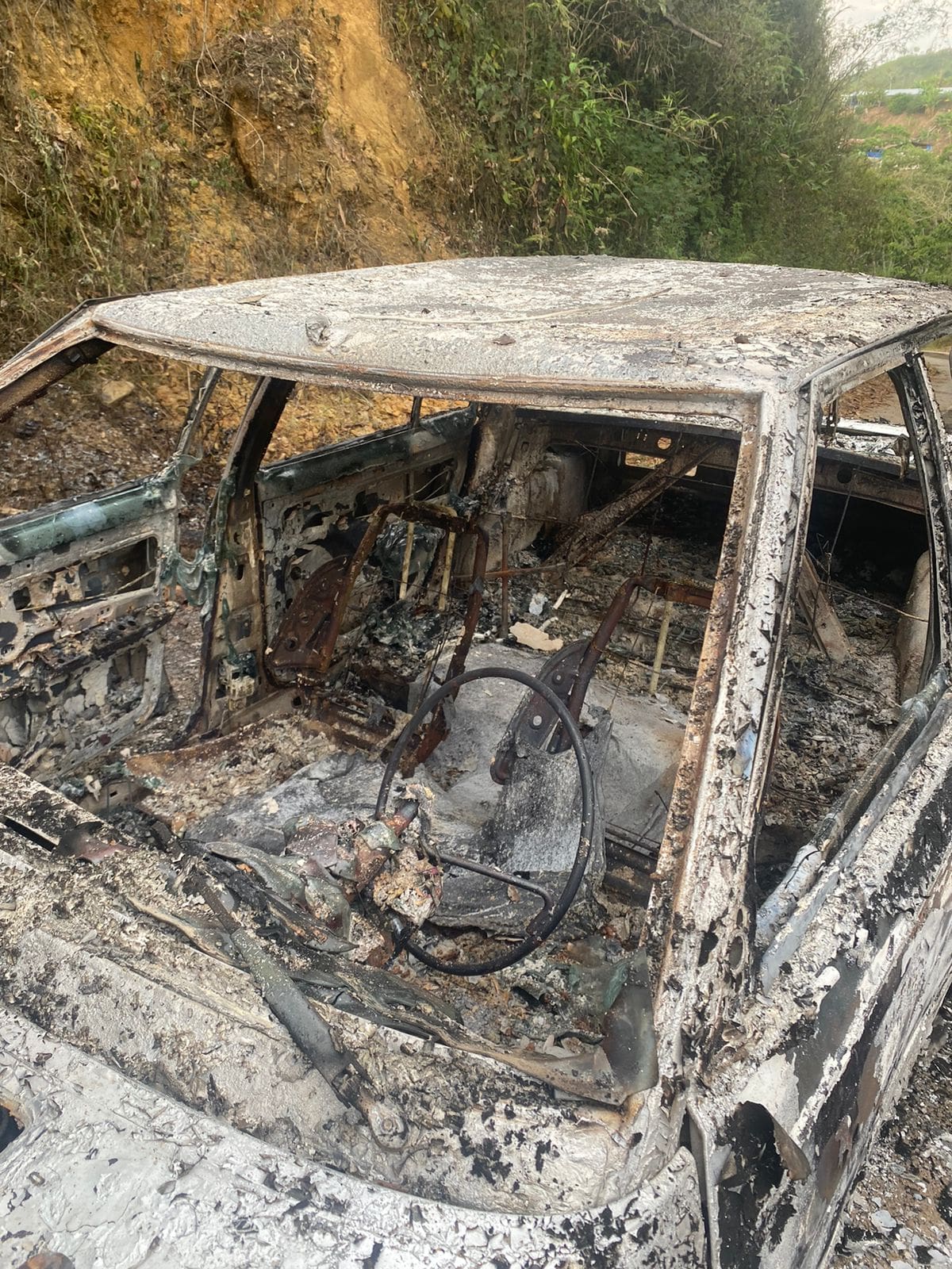 No contentos con esto, los bandidos le prendieron fuego al vehículo y después se dieron a la fuga en motocicletas.