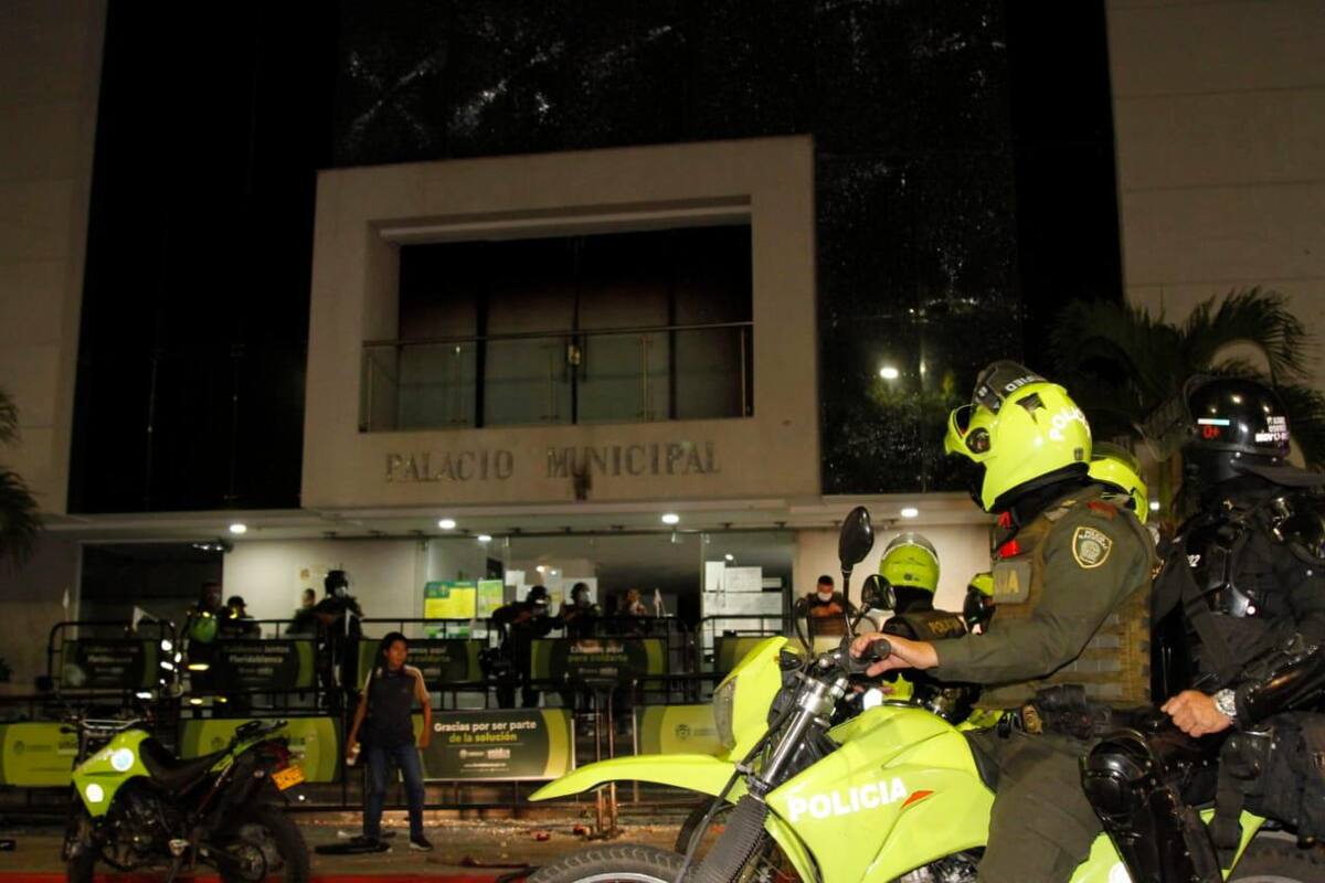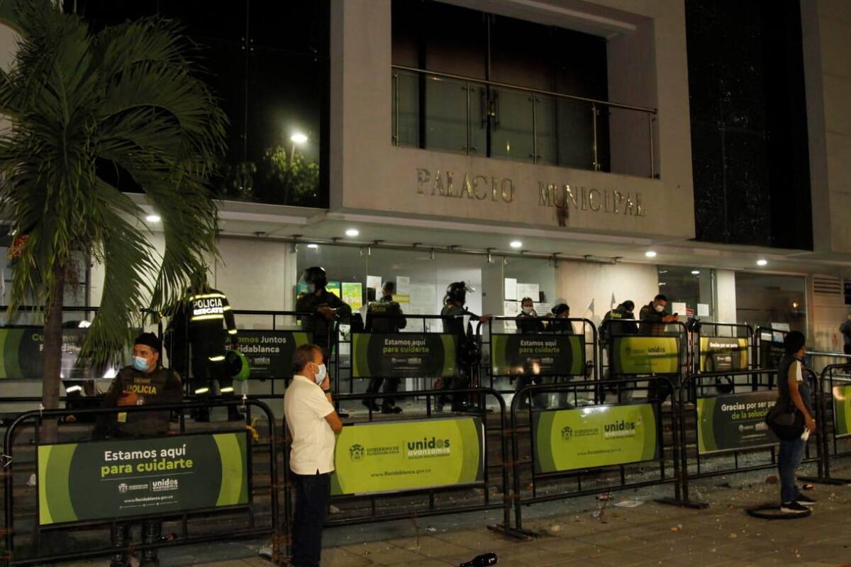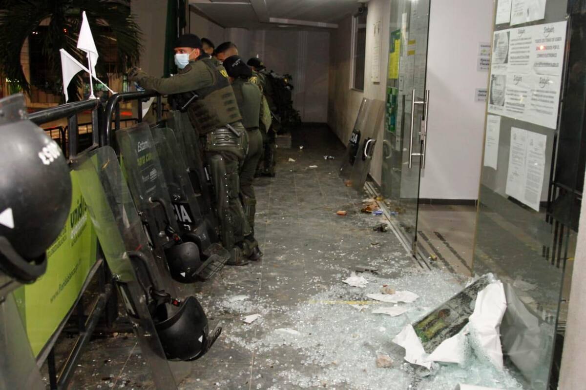 Así quedó el Palacio Municipal de Floridablanca luego que un grupo de personas arremetiera contra las instalaciones y se procediera a ejercer el control por parte del Esmad.