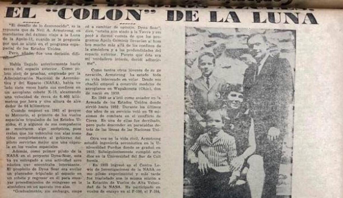Otra nota era titulada como ‘Armstrong, Colón del Siglo XX’. Tal era la hazaña, que comparaban al jefe de la tripulación con el hombre que colonizó nuestro continente.