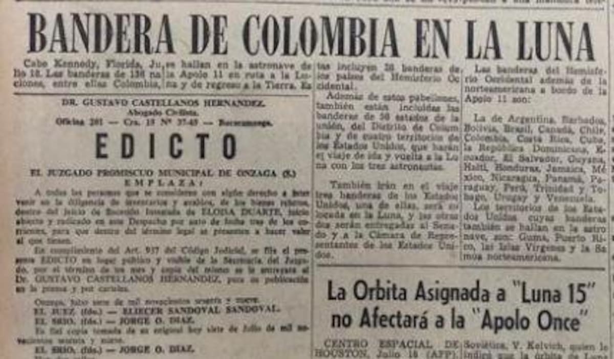 Por si no lo sabía, la bandera de Colombia estuvo en la luna. Así lo dio a conocer este medio a los bumangueses en aquel año, en donde expresaba que la bandera de Estados Unidos viajaba con 19 banderas que conformaban los países del hemisferio occidental.