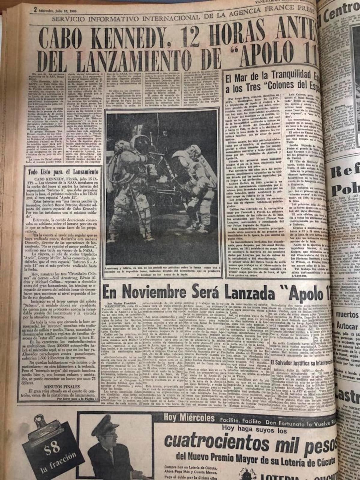 El 16 de julio de ese año, fecha en la que se presentó el lanzamiento del Apolo 11, la portada de Vanguardia fue ‘Hombre a la luna. Hora cero para el Apolo 11’. Esta se acompañó de una fotografía que mostraba la nave que sería impulsada por el cohete Saturno V. Además, en dicha página se mostraba una noticia que decía “Se agotaron televisores”, esto debido al auge y la exposición mediática que tuvo este hecho.
