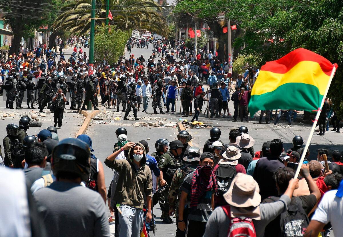 Además, mineros seguidores del mandatario bloquean desde la noche del domingo la ruta que une Cochabamba con Oruro y La Paz. Los vehículos que intentaban avanzar fueron amenazados con dinamita para hacerlos retroceder, según informó El Deber, que reportó al menos seis detonaciones.