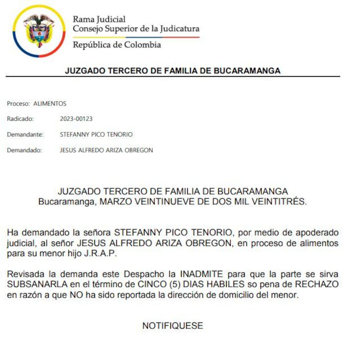 Además, la vocera del colectivo de mujeres señaló que el diputado Ariza no puede salir del país debido a la restricción judicial porque al parecer ha incumplido en reiteradas ocasiones con la cuota alimentaria para su hijo, un menor de edad.