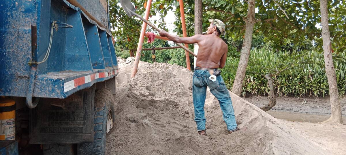“Yo soy arenero de toda la vida; aprendí desde niño, desde que tenía 10 años porque mi papa era agricultor pero también arenero y este fue mi mundo desde siempre y a eso me he dedicado toda la vida, en firme llevo más de veinte años trabajando acá; tengo seis hermanos y todos vivimos de esto... de sacar arena ”‘El boleo’, cuenta, lo hace a mano limpia, con baldes; casi que transformándose en una draga humana que se sumerge bajo el río soportando las altas temperaturas que, como de costumbre, arropan al ‘Puerto’. Luego de extraer el material lo transportan en canoas repletas hasta la orilla en donde usan palas para llevar el producto hasta granes bandas mecánicas, que finalmente, llenan las volquetas que permanecen allí estacionadas.