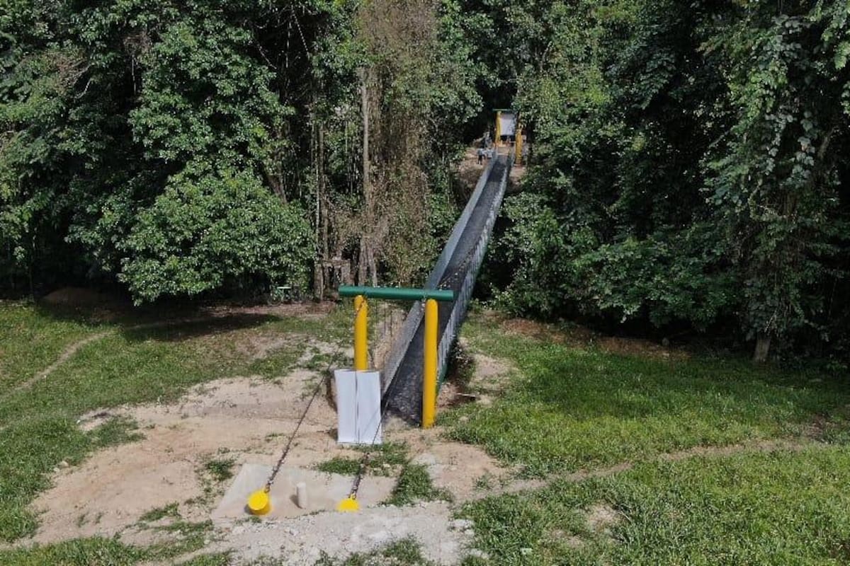 Asimismo, el ingeniero residente, Daniel Blanco, explicó que "se trata de una estructura metálica en H, construida en acero al carbón de 6 pulgadas y reforzada con ángulo de 2 pulgadas, anclajes en concreto, piso en lámina de 4 milímetros de densidad, malla eslabonada en los laterales y potenciada con guayas ubicadas a cada metro para hacerla más estable, duradera y segura".